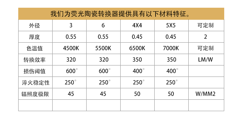 荧光陶瓷转换片(反射式)